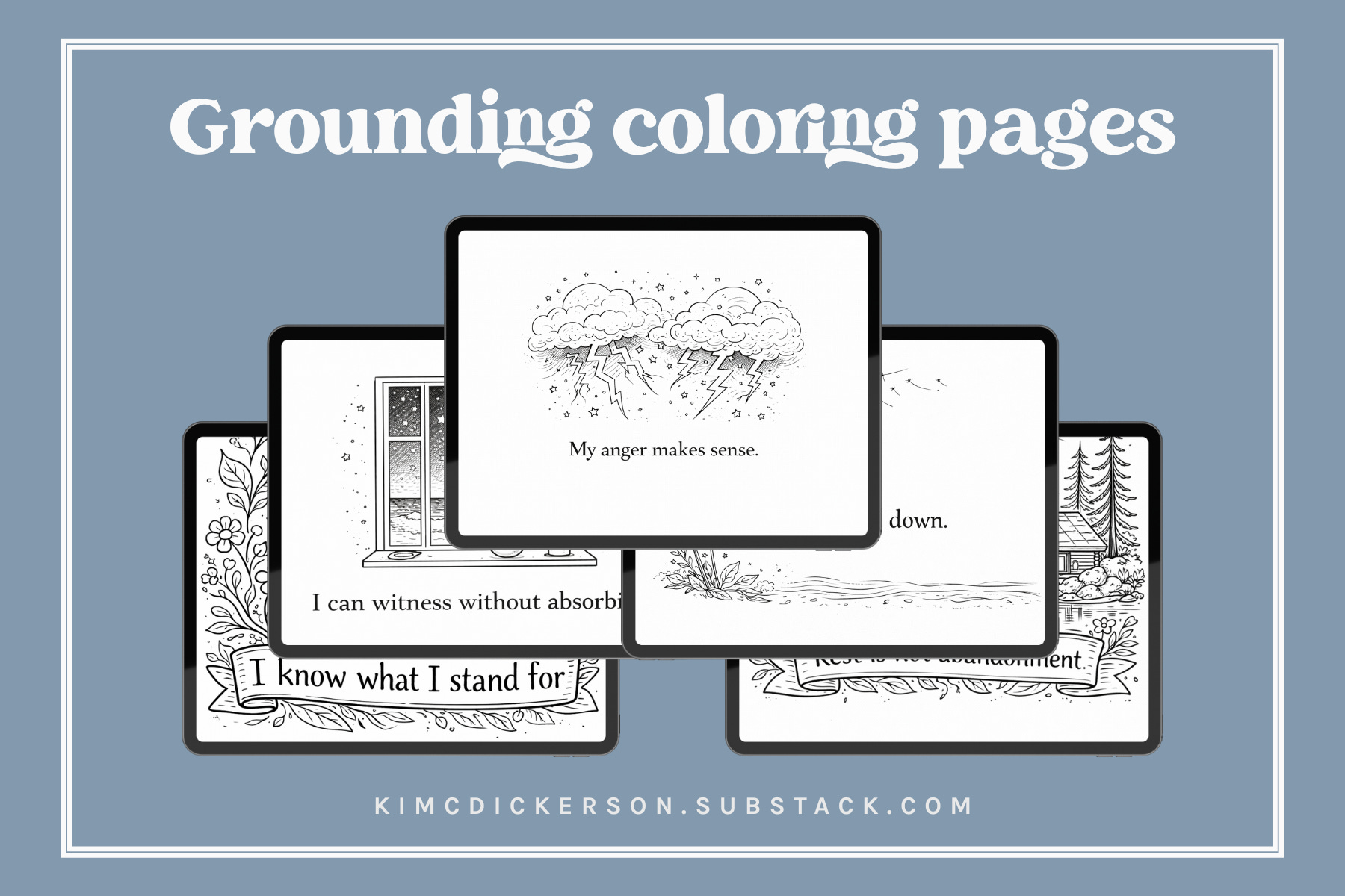 ***Paid subscribers: Head to Kim’s Therapy Space, where five more pages of grounding coloring pages are available to download.