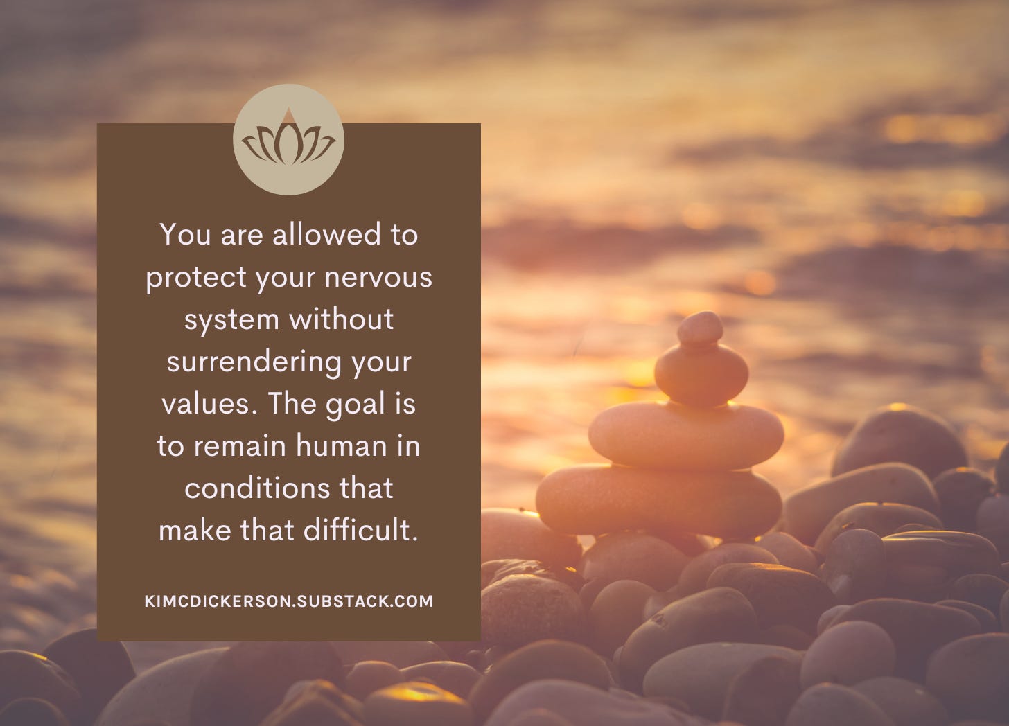 You are allowed to protect your nervous system without surrendering your values. The goal is to remain human in conditions that make that difficult.